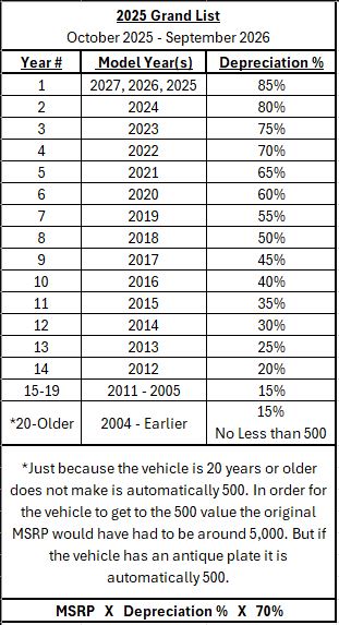 For the 2024 Grand List and moving forward the way that Motor Vehicles are valued will be changing.